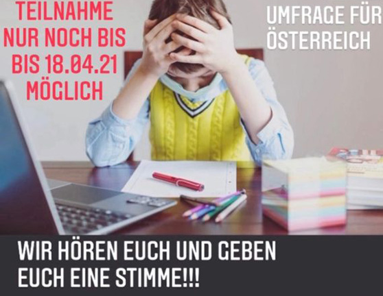 Schabus, M. & Eigl, E. (2021, July 29). „Jetzt Sprichst Du!“: Belastungen und psychosoziale Folgen der Coronapandemie für österreichische Kinder und Jugendliche. Pädiatrie und Pädologie, S 7. https://rdcu.be/cqSzt
